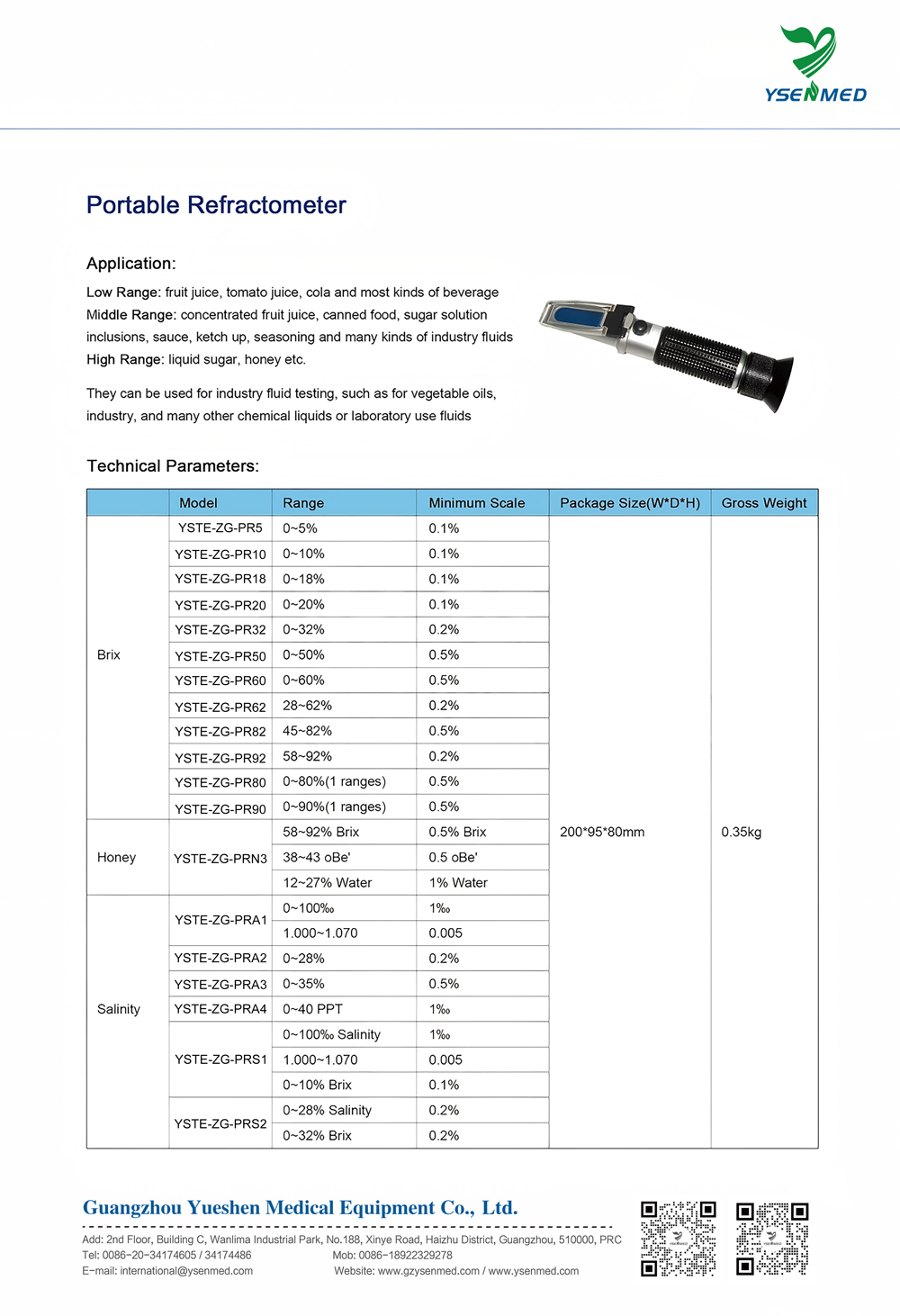 Brix YSTE-ZG-PR5 0~5% 0.1% 200*95*80mm 0.35kg